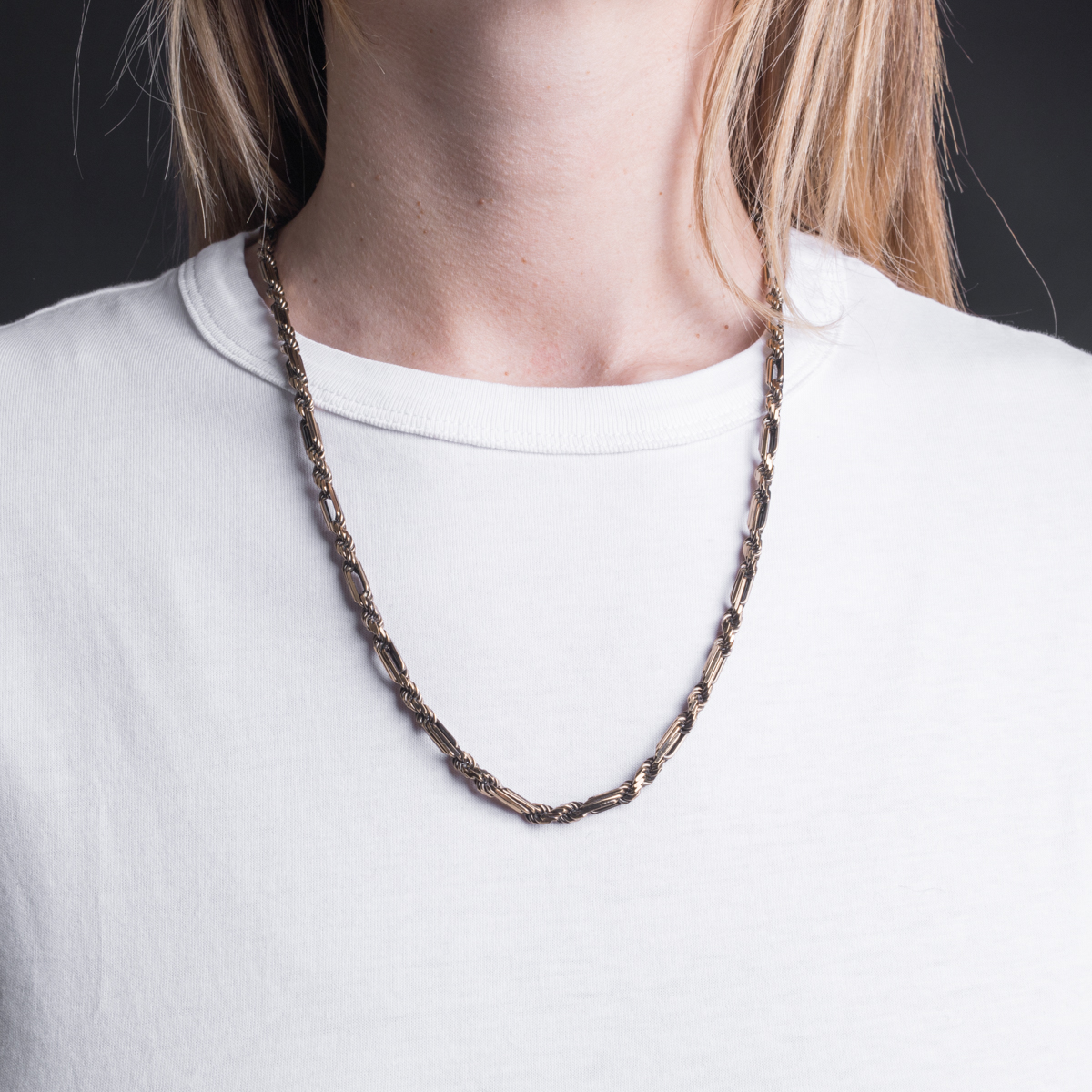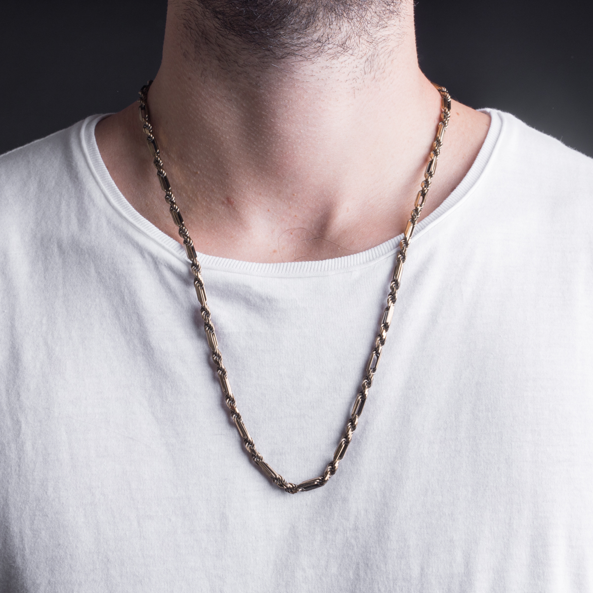 Yellow Vintage Gold-plated bronze necklace diamond-cut figarope. Handmade since 1988 in our company in the heart of Tuscany. Closure with lobster claps and tag with logo to ensure authenticity. Paying homage to the traditiopnal craftsmanship ORIGINAL FIGAROPE has created an accessory with a unique and contemporary charm designed to surprise.