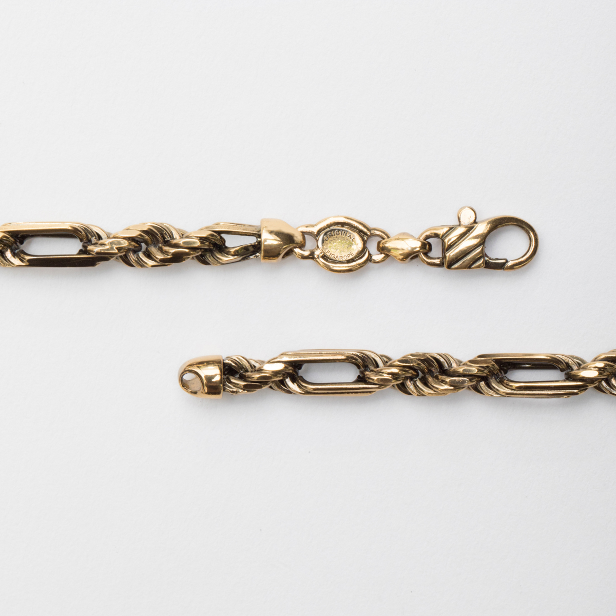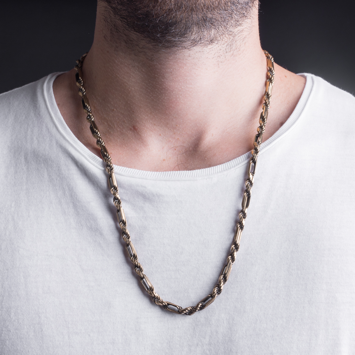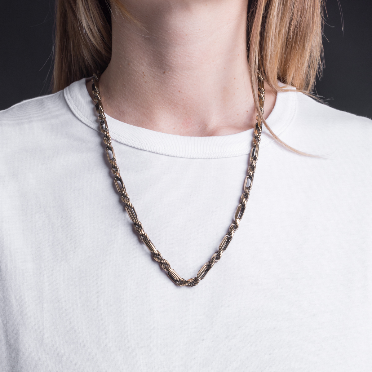 Yellow Vintage Gold-plated bronze necklace diamond-cut  figarope. Handmade since 1988 in our company in the heart of Tuscany. Closure with lobster claps  and tag with logo to ensure authenticity. Paying homage to the traditiopnal craftsmanship  ORIGINAL FIGAROPE has created an accessory with a unique and contemporary charm designed to surprise.