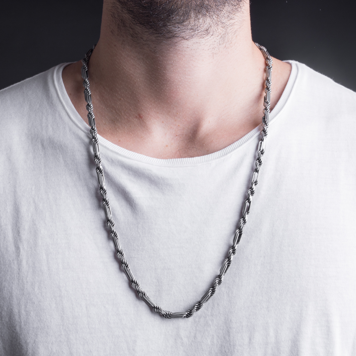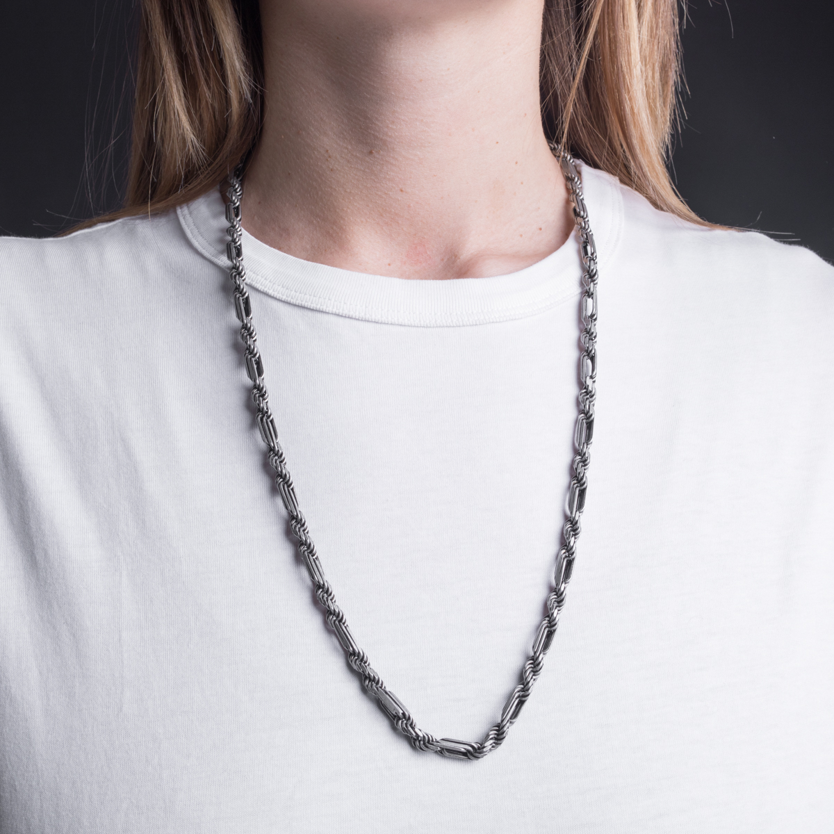 Palladium-plated bronze necklace diamond-cut  figarope. Handmade since 1988 in our company in the heart of Tuscany. Closure with lobster claps  and tag with logo to ensure authenticity. Paying homage to the traditiopnal craftsmanship  ORIGINAL FIGAROPE has created an accessory with a unique and contemporary charm designed to surprise.