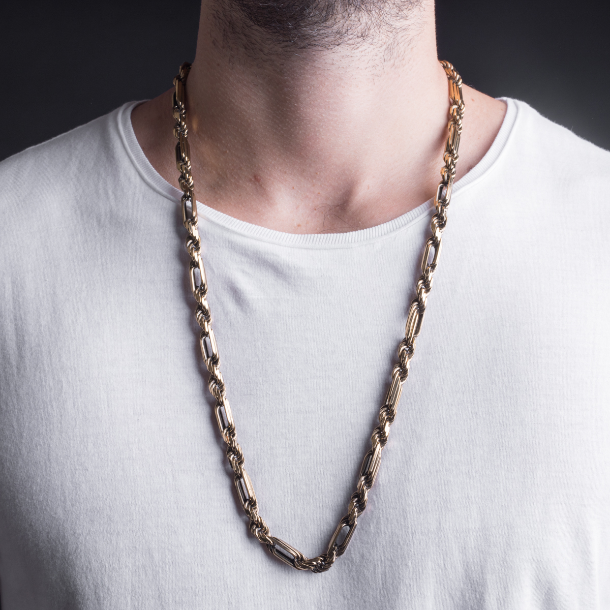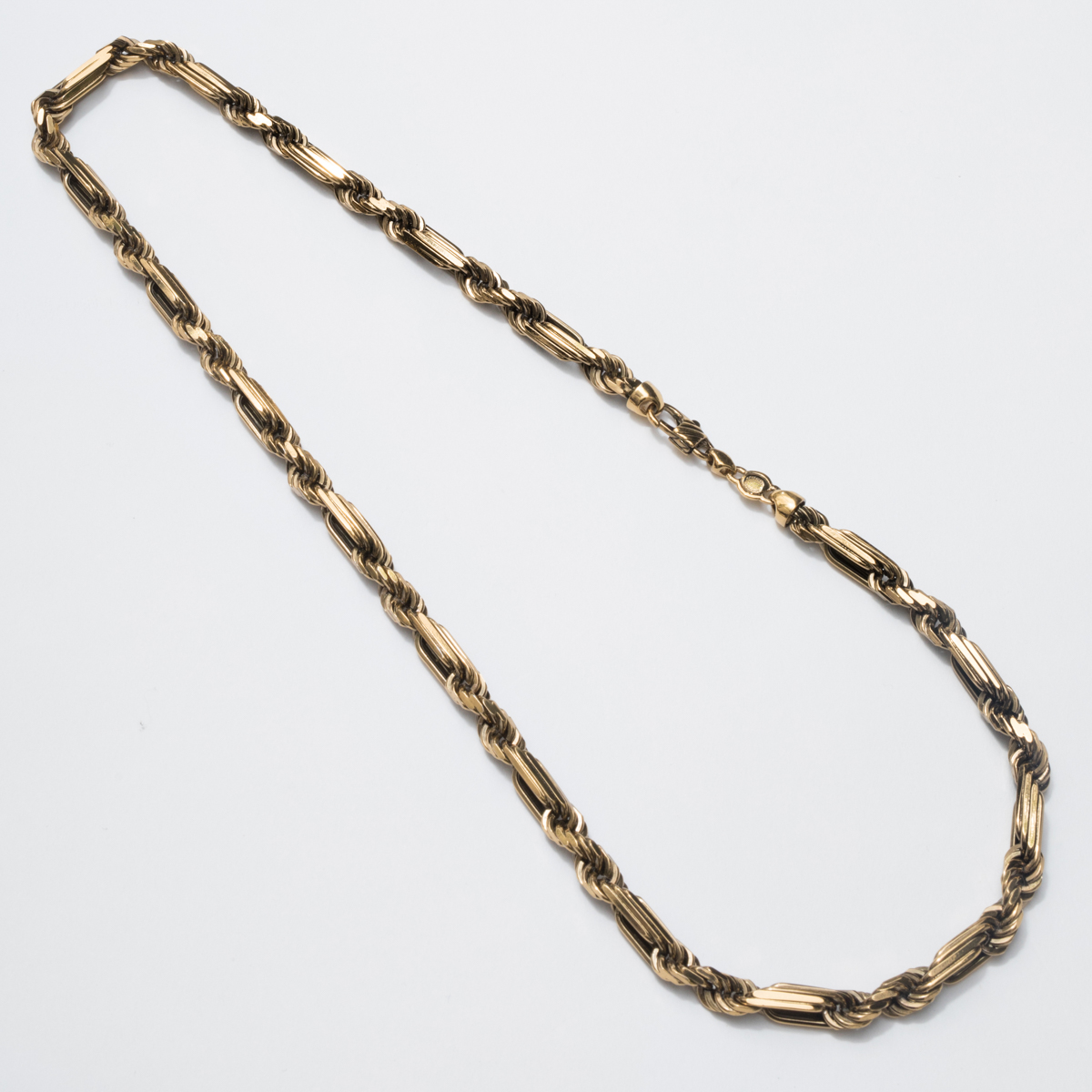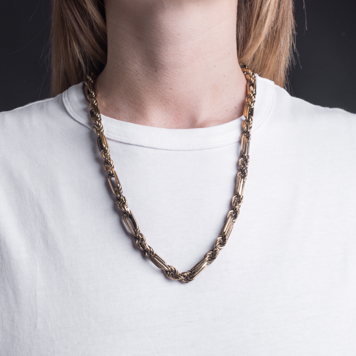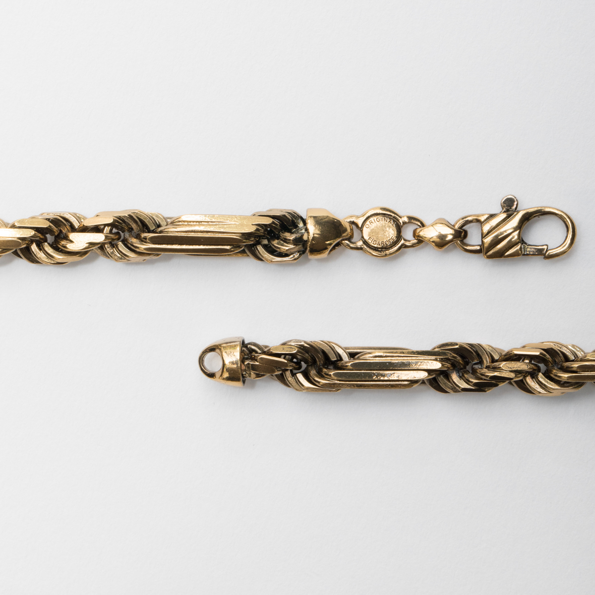 Yellow Vintage Gold-plated bronze necklace diamond-cut  figarope. Handmade since 1988 in our company in the heart of Tuscany. Closure with lobster claps  and tag with logo to ensure authenticity. Paying homage to the traditiopnal craftsmanship  ORIGINAL FIGAROPE has created an accessory with a unique and contemporary charm designed to surprise.
