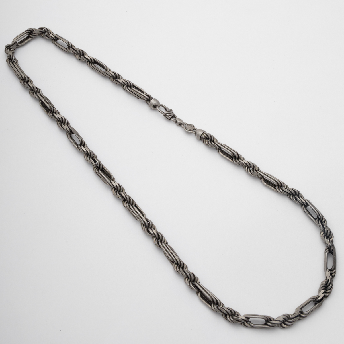 Palladium-plated bronze necklace diamond-cut  figarope. Handmade since 1988 in our company in the heart of Tuscany. Closure with lobster claps  and tag with logo to ensure authenticity. Paying homage to the traditiopnal craftsmanship  ORIGINAL FIGAROPE has created an accessory with a unique and contemporary charm designed to surprise.