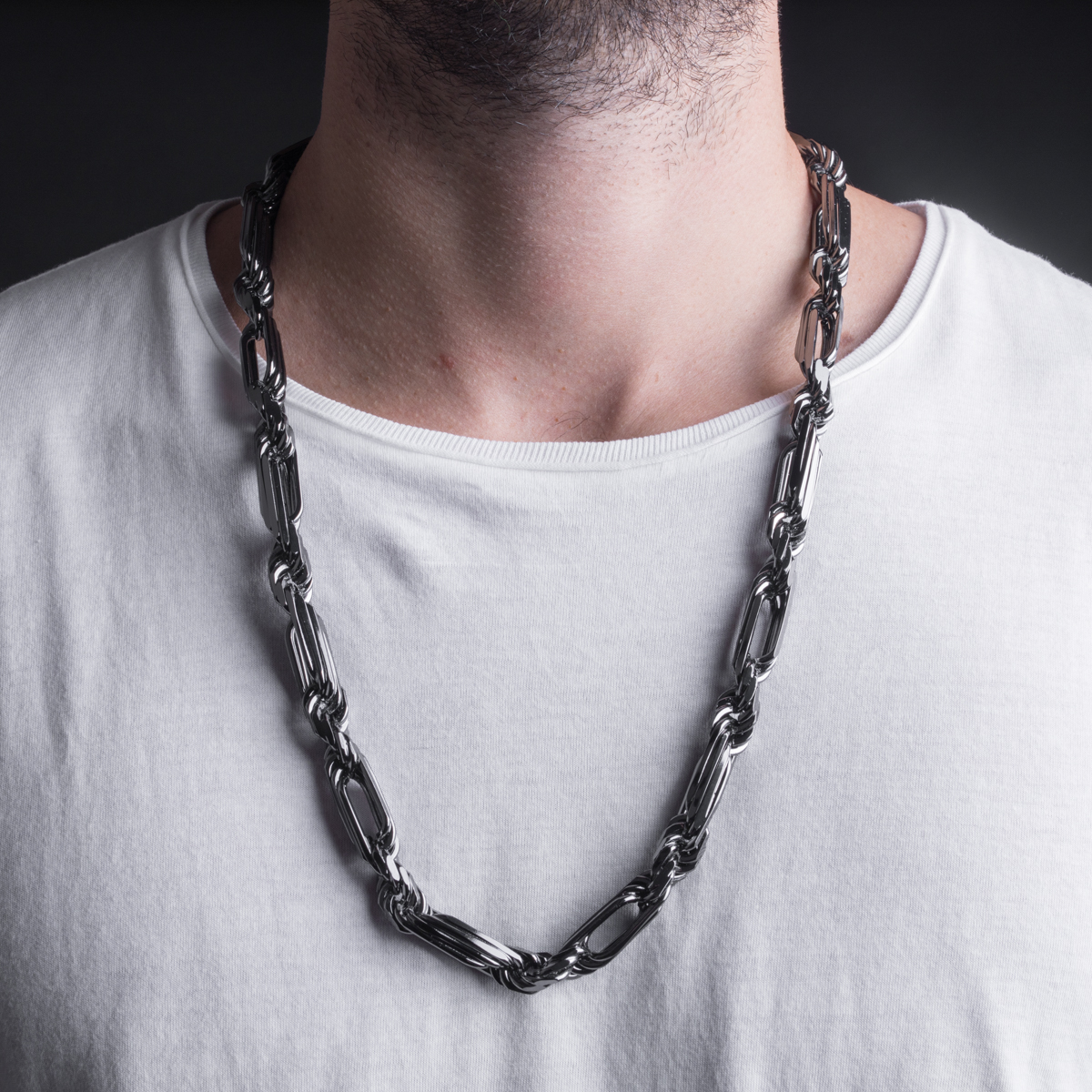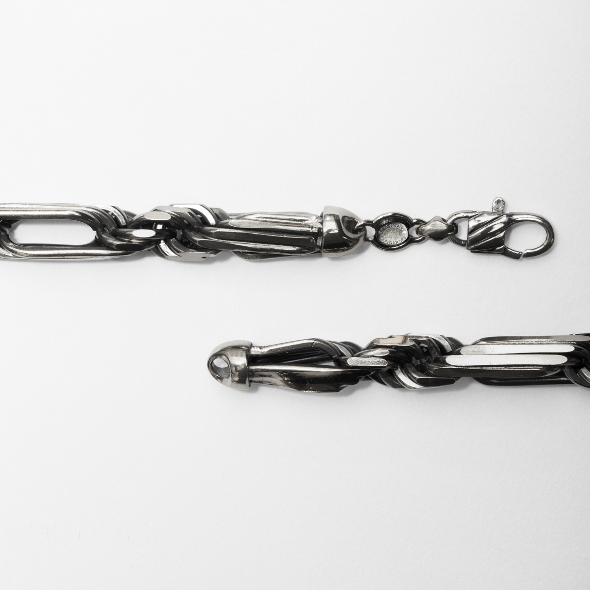 Ruthenium-plated bronze necklace diamond-cut figarope. Handmade since 1988 in our company in the heart of Tuscany. Closure with lobster claps and tag with logo to ensure authenticity. Paying homage to the traditiopnal craftsmanship ORIGINAL FIGAROPE has created an accessory with a unique and contemporary charm designed to surprise.