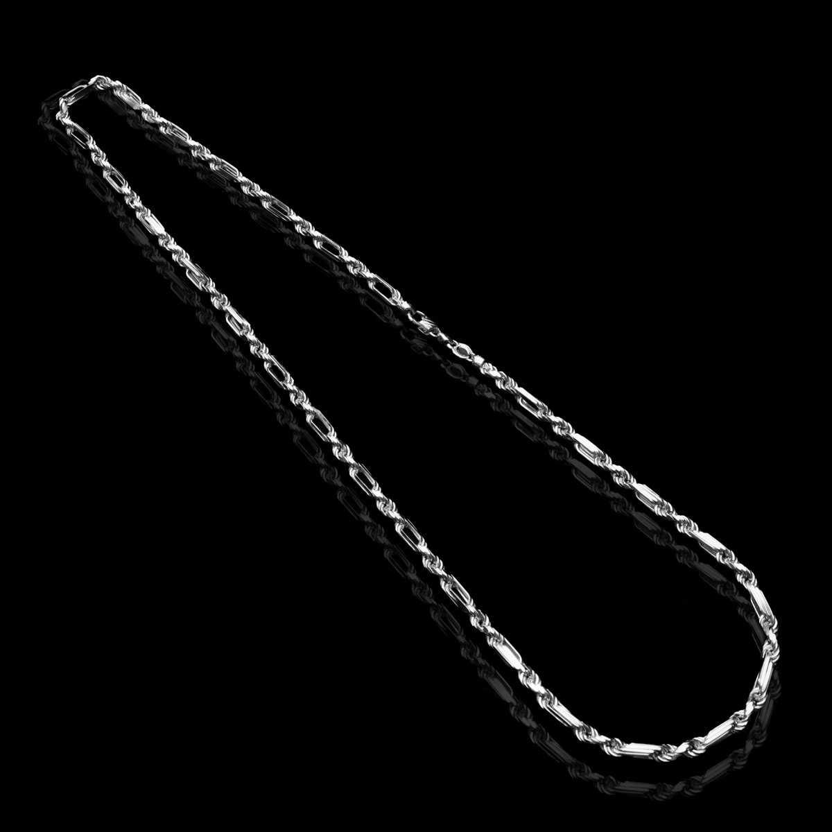 Silver Necklace white-plated diamond-cut figarope. Handmade since 1988 in our company in the heart of Tuscany. Closure with lobster claps and tag with logo to ensure authenticity. Paying homage to the traditiopnal craftsmanship ORIGINAL FIGAROPE has created an accessory with a unique and contemporary charm designed to surprise.