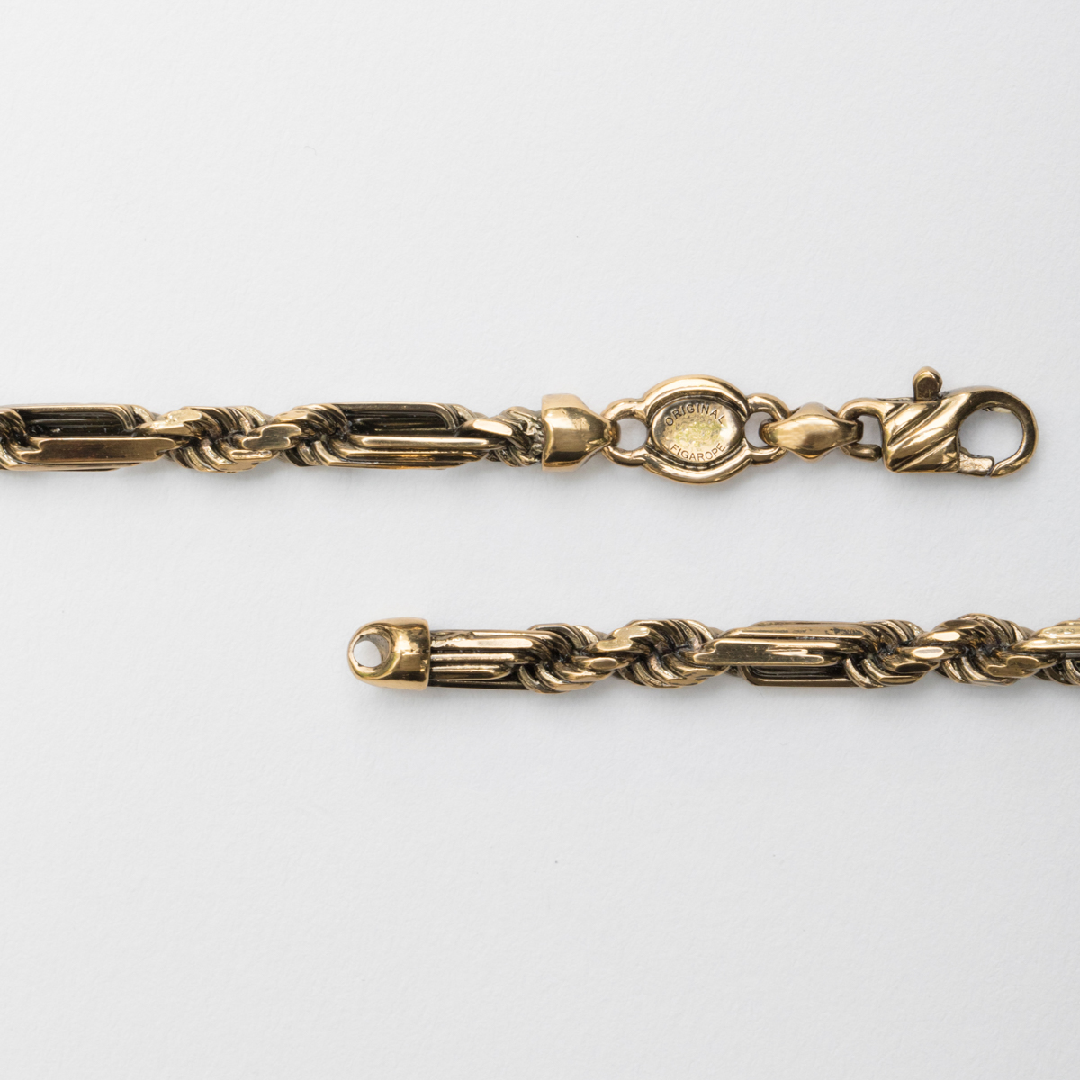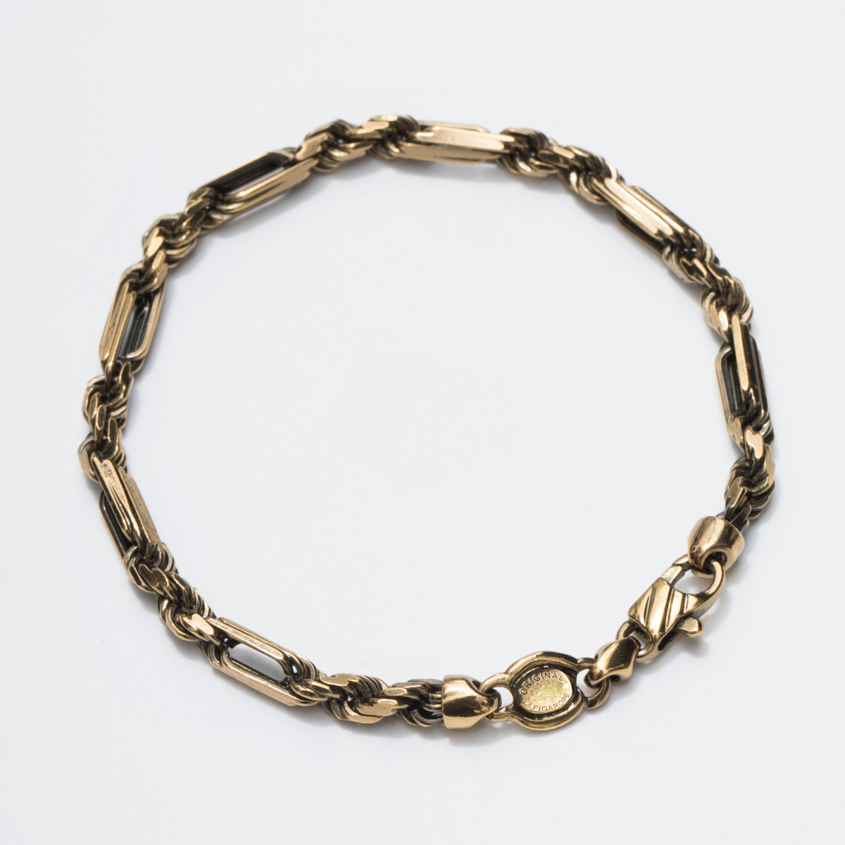 Bracciale di catena figarope liscia diamantata in bronzo con bagno in oro giallo vintage 24 kt.Fatta a mano dal 1988 nella nostra azienda nel cuore della Toscana. Chiusura con moschettone e medaglietta firmata per garantire autenticità. Rendendo omaggio alla storica produzione di gioielli in catena, ORIGINAL FIGAROPE ha creato un accessorio dal fascino unico e contemporaneo pensato per sorprendere.